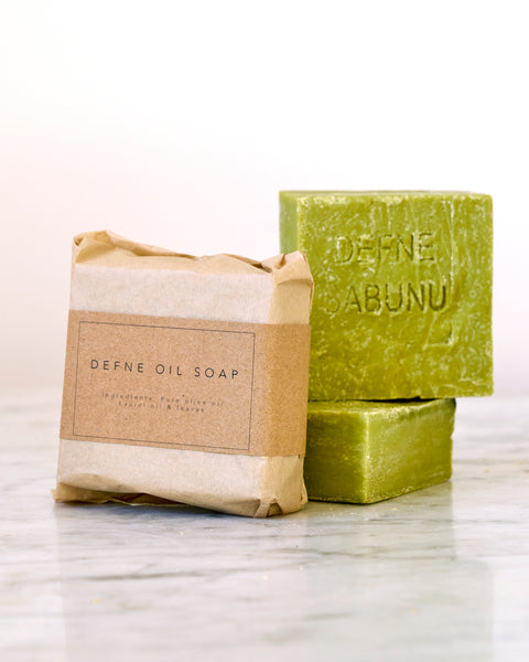 Defne- Crafted using time-honoured techniques this soap shines as a genuine treasure in skin- and haircare. This soap is created using a blend of natural defne oil and leaves, and pure olive oil. Use it on your face, body and hair.