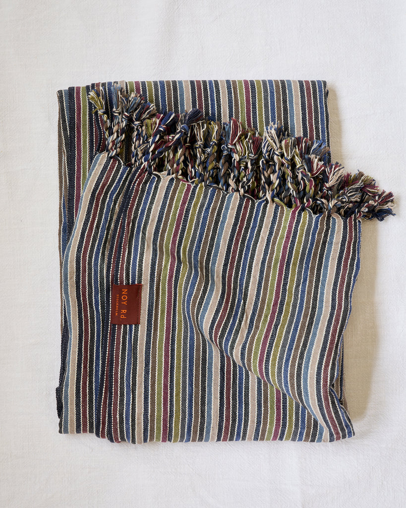 A sophisticated dark striped hamam towel. Soft and quick drying. Perfect to bring to the beach, to protect your favourite chair, as a shawl or to wrap around a little person for comfort.